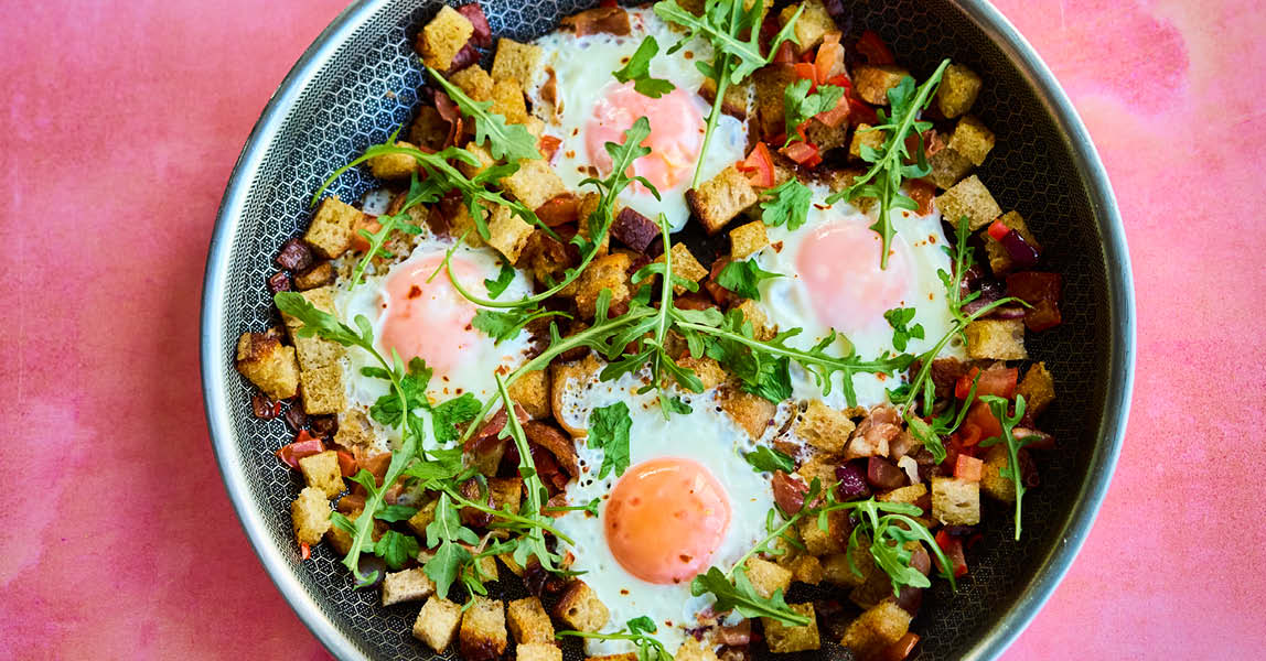 This rustic, one-pan dish layers crispy sourdough, salty prosciutto and fiery chilli with perfectly poached eggs nestled in a savoury mix. Finished with fresh rocket and parsley, it makes a speedy, flavour-packed meal, anytime of day.